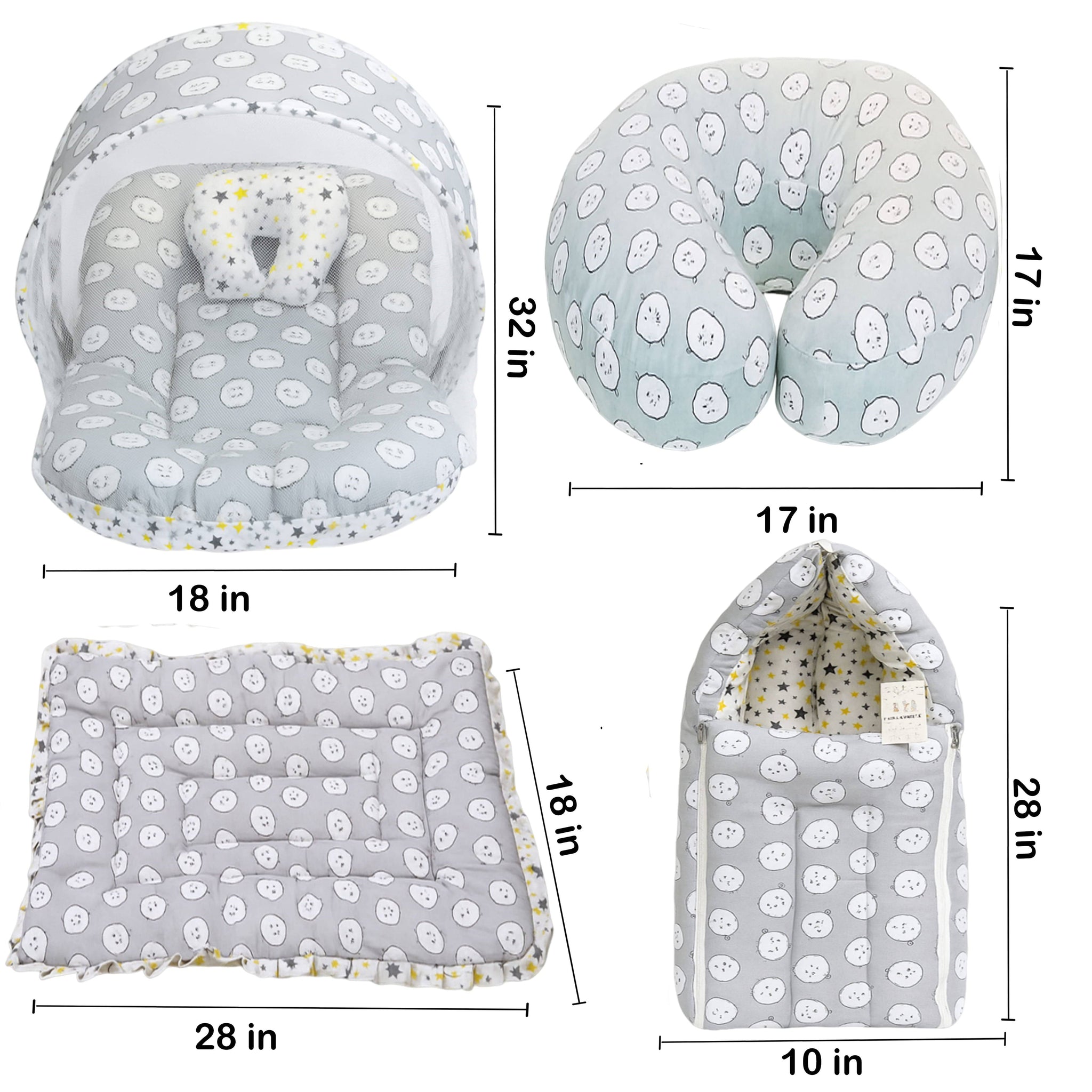 1. 1 Mattress with Net | 1Pillow2. 1 Sleeping Bag3. 1 Hand Carry Bed 4. 1 Feeding Pillow