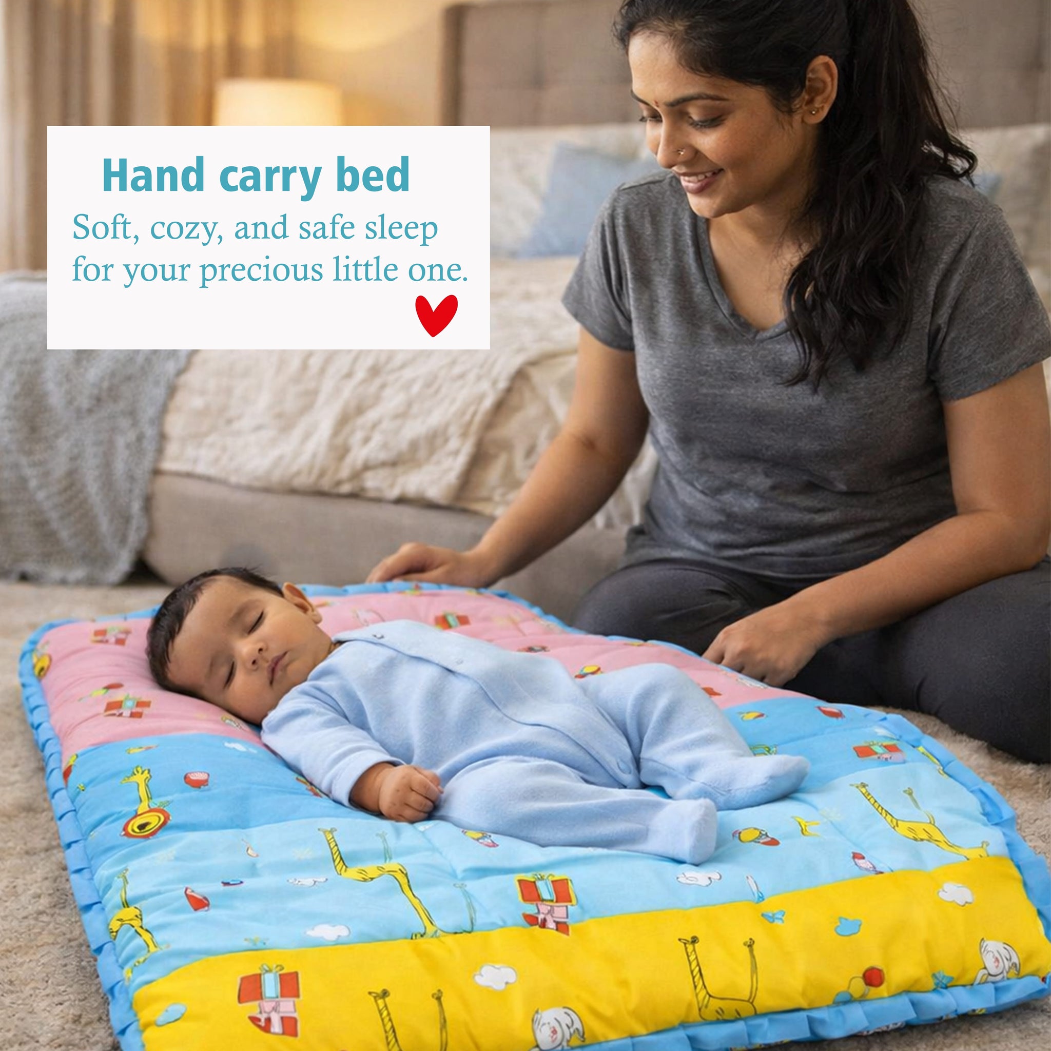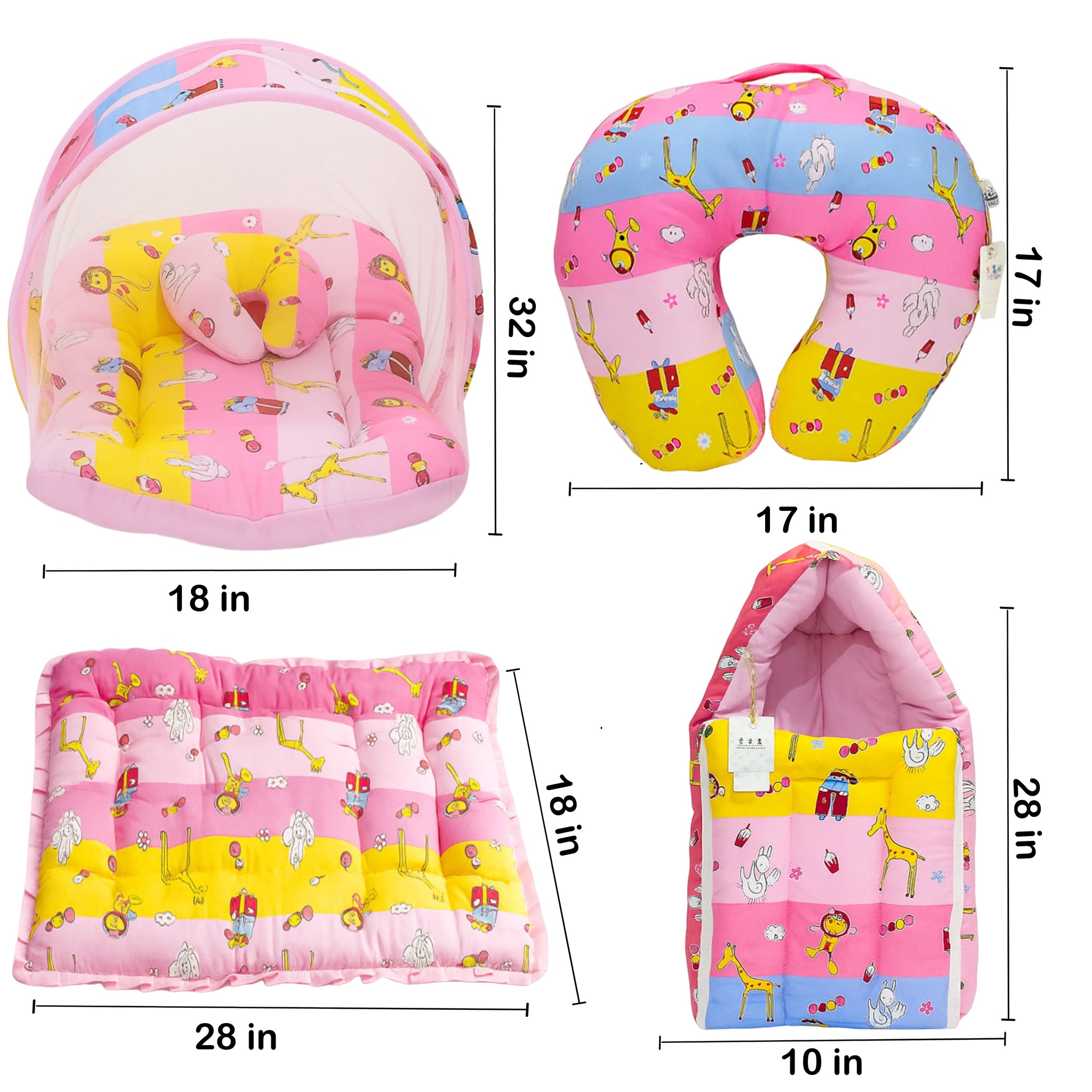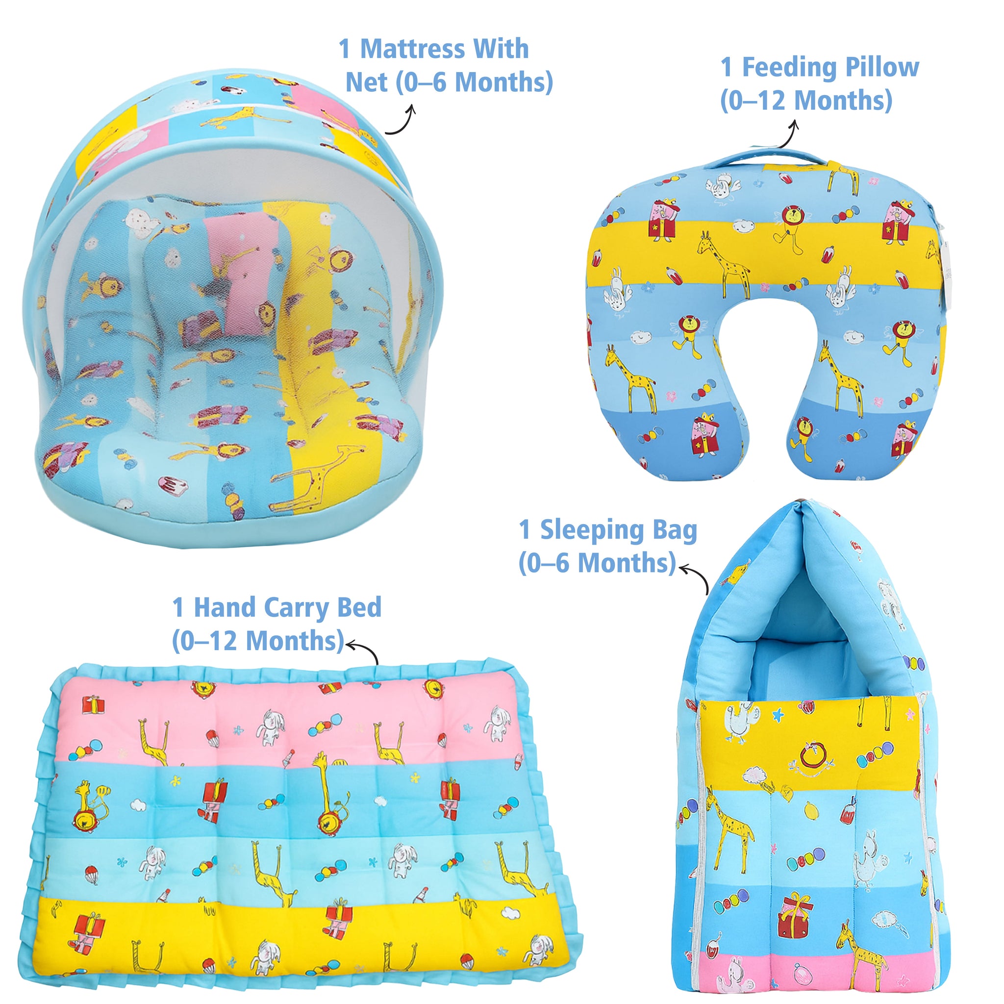 1. 1 Mattress with Net | 1Pillow2. 1 Sleeping Bag3. 1 Hand Carry Bed 4. 1 Feeding Pillow