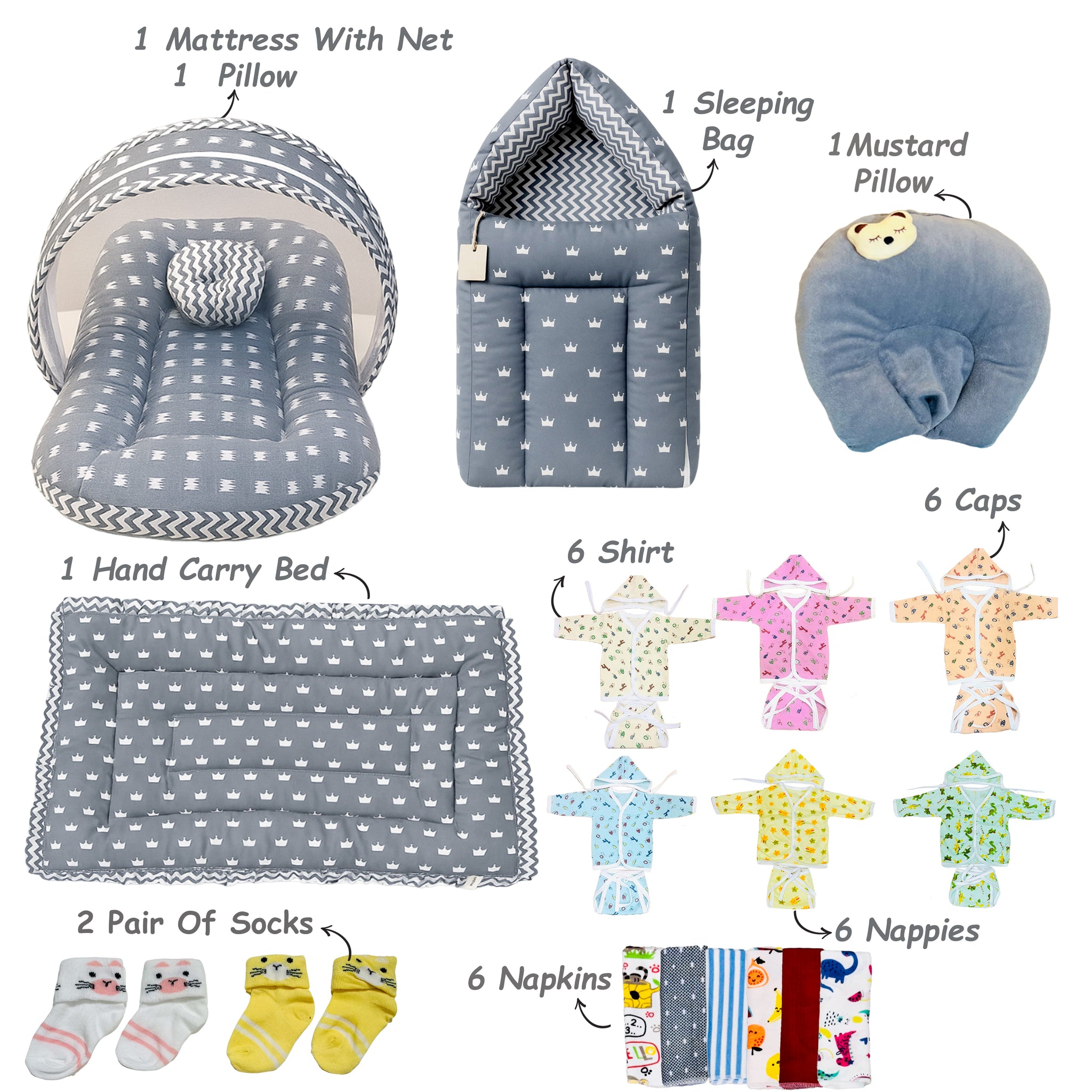 7. 6 Shirts |6 Nappies |6 Caps | (0-3)