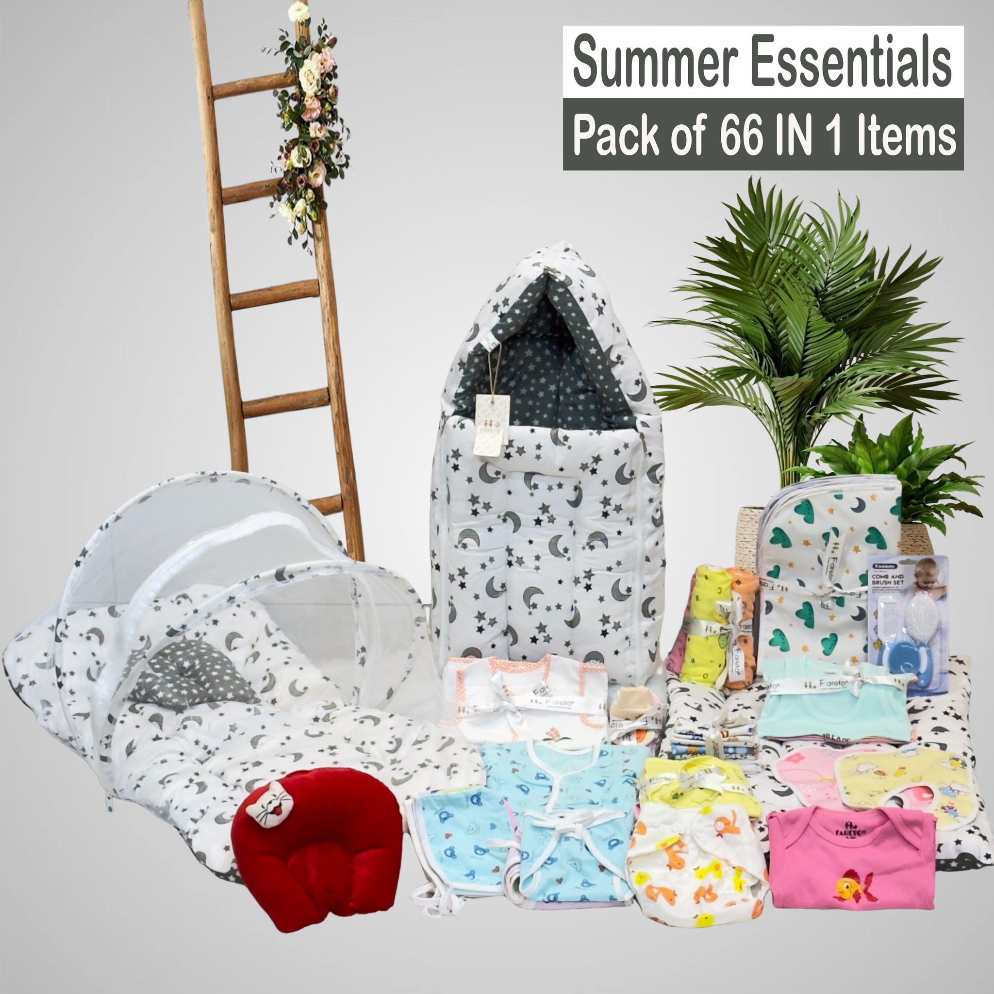 Fareto Baby Boy's & Girl's Summer Hospital Essential Combo for New Born | Gift Pack | Baby Products | Maternity Essentials | Bedding Set (66 Items)(0-6 Months)(F725)