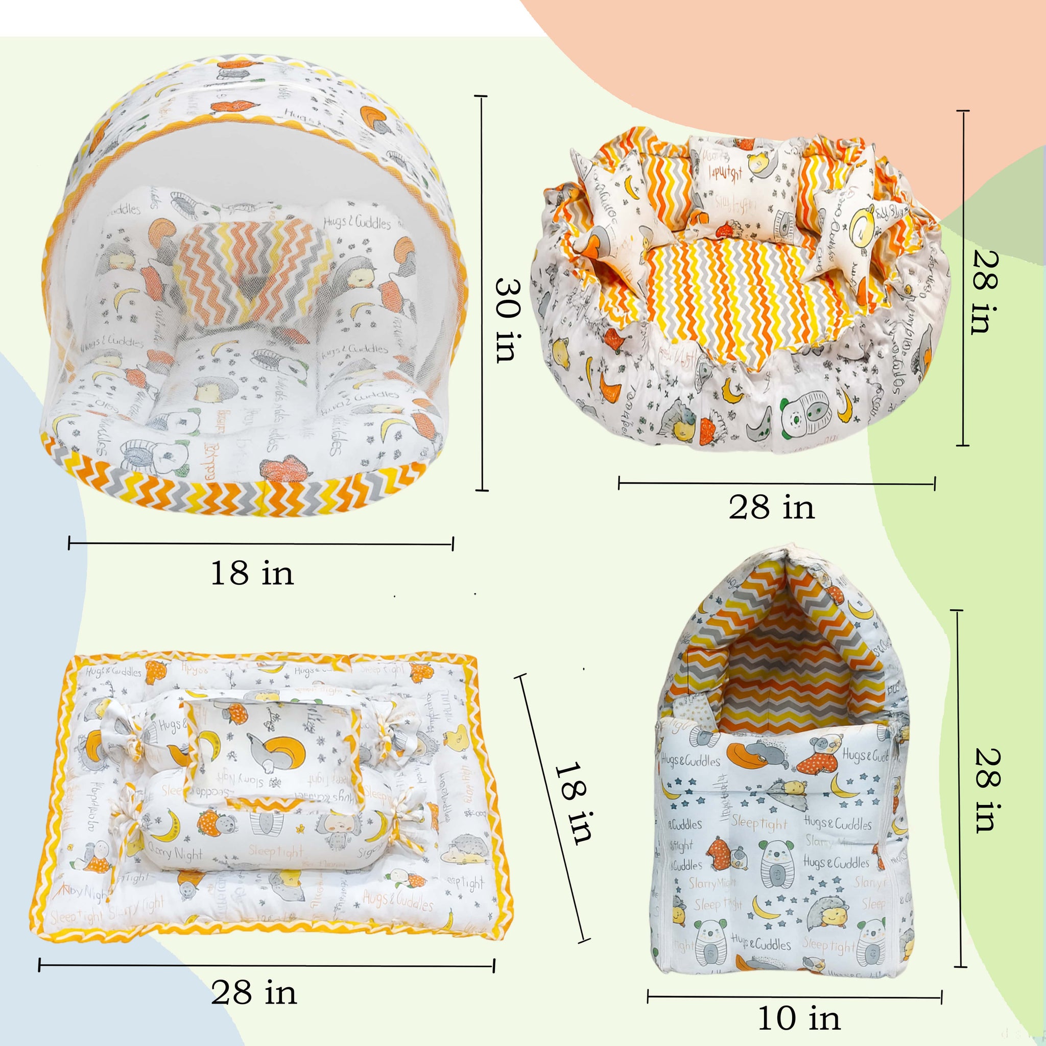 This combo pack includes everything your baby needs for a comfortable and peaceful sleep, including a mattress with a net, a sleeping bag, a baby nest, a hand carry bed, and a pillow set with a bolster a blanket