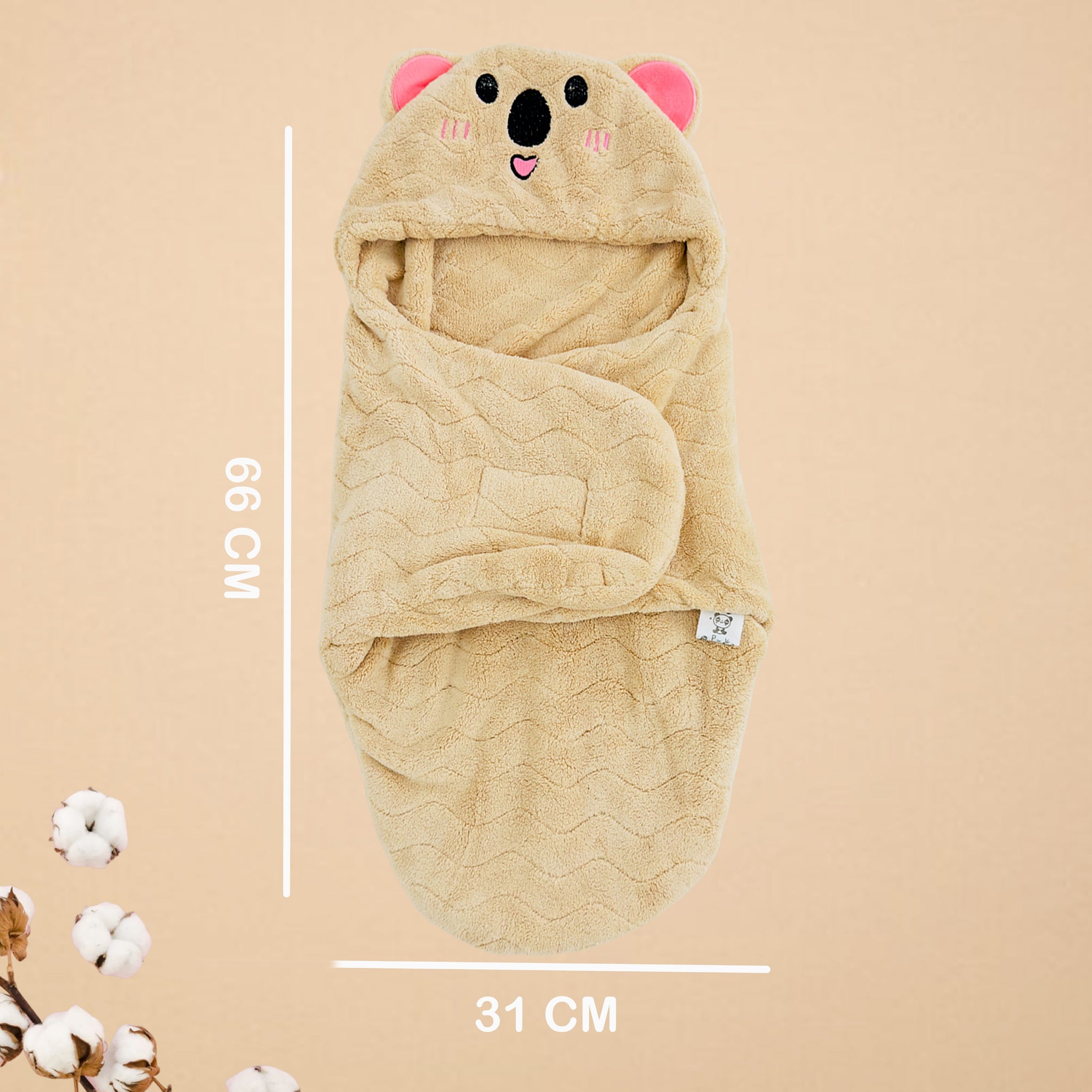 Fareto Hooded Baby Teddy Sleeping Bag – Ultra-Soft Fleece Swaddle Wrap for Newborns (0–6 Months) | Warm & Cozy Infant Blanket with Cute Ears(F642)