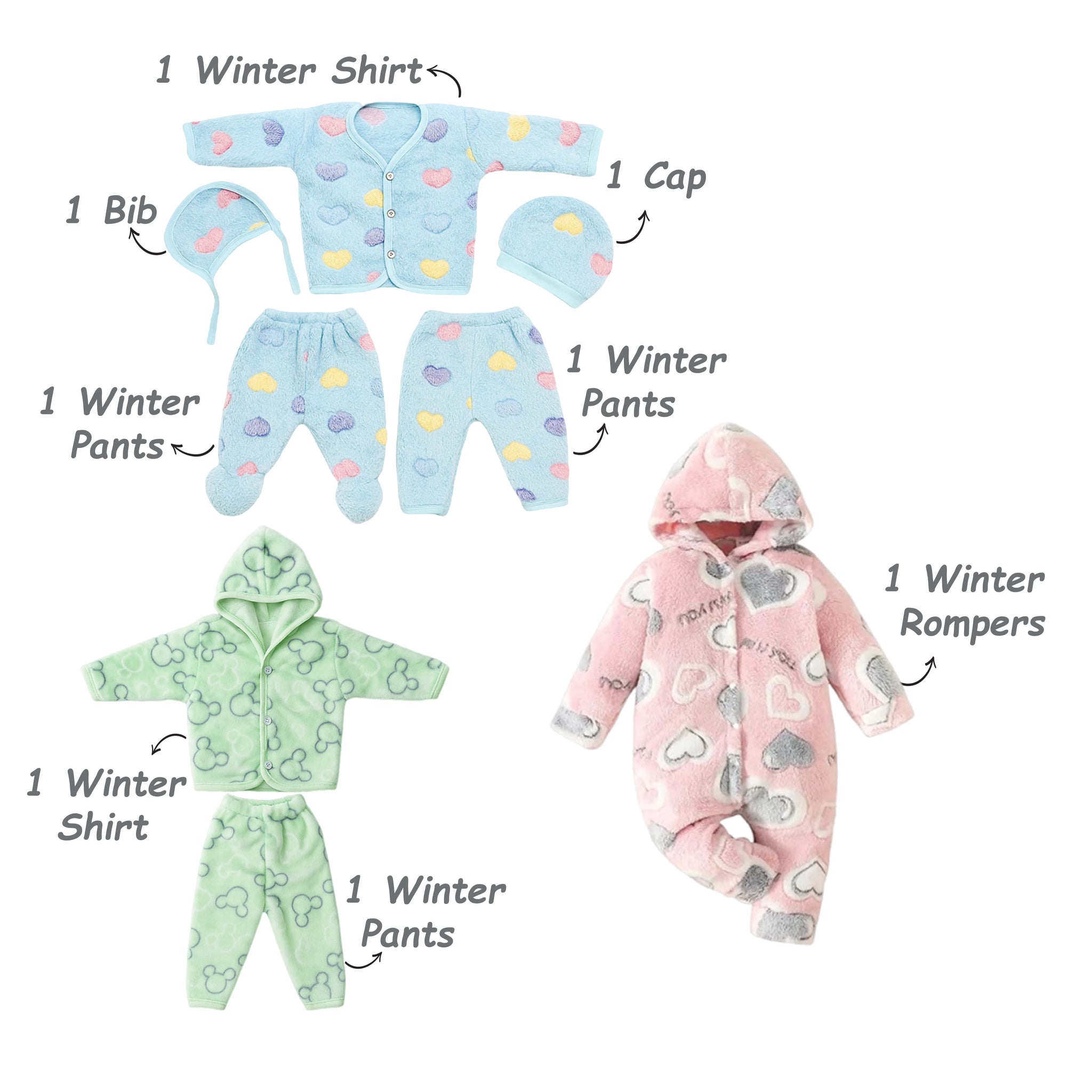 1.1 Winter Shirt | 2 Winter Pants | 1 Bib | 1 Cap (0-3m)